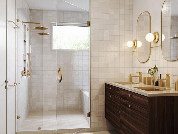 Clean architecturePrivate yardsArtisan tile flooringLuxury wood flooringPremium quartz countertopsHunter ceiling fansWest elm pendants