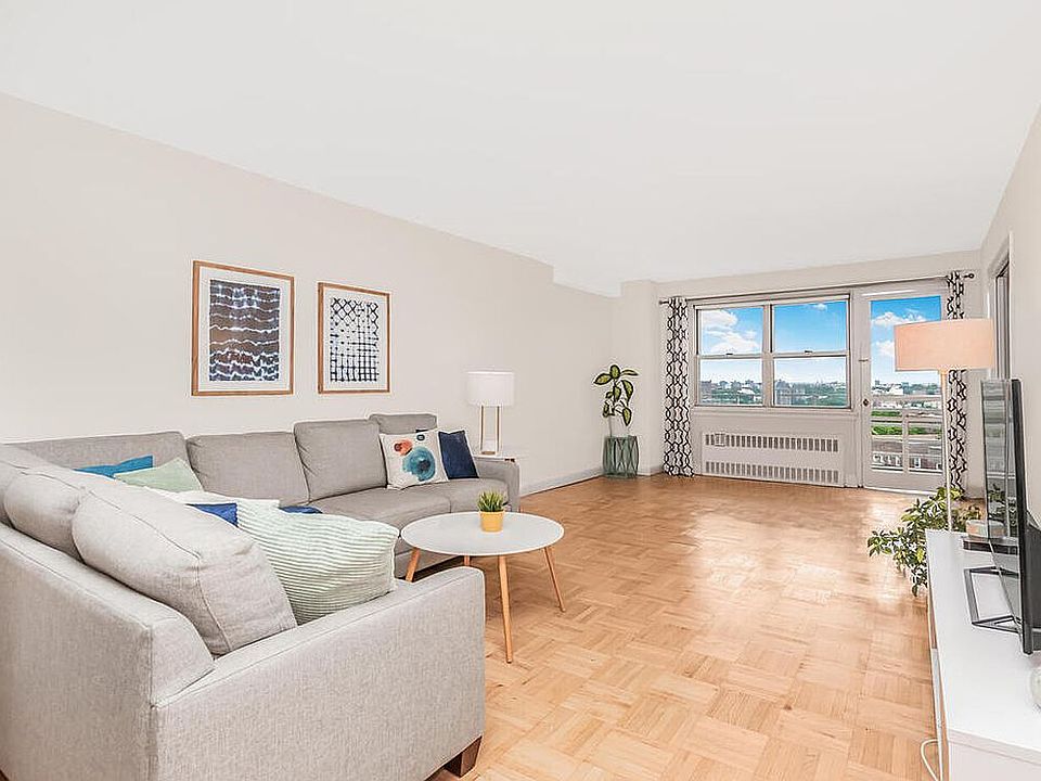 Discover this oversized Jr. 4 at the Parkway House – a bright, spacious home with desirable eastern exposure that fills the living area with natural light throughout the day. Unwind on your private balcony—perfect for a morning coffee or a quiet moment in the fresh air. This unit features a recently renovated bathroom, beautiful parquet hardwood flooring throughout, generous closet space, a flexible bonus room perfect as a second bedroom or home office. Some of the amenities include; 24-hour doorman, shared laundry room, fitness center, high speed internet, outdoor playground, storage room (waitlist), bike room (waitlist), on-site dentistry, on-site children's Physical therapy center, on-site music studio, and an on-site tailor. The Parkway House is located in Prime Central Riverdale, convenient access to shops, restaurants, and public transportation. Express and local buses, along with Metro-North, provide an easy 22-minute commute to Grand Central Station. Parking is available by waitlist or ask about Parking in the nearby Atria. With its unique layout, low maintenance, and fantastic location, this apartment is a must-see. Please schedule your private viewing today.