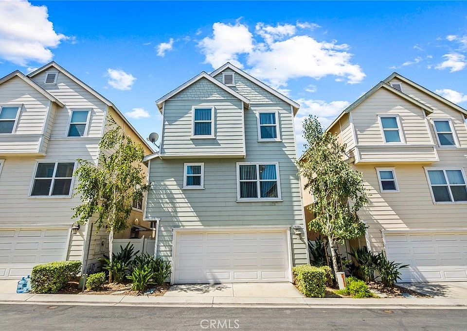 Beautifully upgraded home. Showcasing 3 spacious bedrooms, 2.5 bathrooms with direct access 2 car garage and an excellent interior tract location. Large windows at every corner and soaring vaulted ceilings in the main living space, this home is light and bright. Upgrades include stately laminate wood flooring with sound resistant padding, ceramic tile flooring and ceiling fans. Large kitchen with maple colored cabinets great for entertaining or hosting dinner parties. Relax in a luxurious master bedroom with ensuite bath boasting soaking tub, dual sink vanity and oversized walk in closet. Generously sized family room offers vaulted ceiling and fireplace. The laundry room is conveniently located on the third level near the bedrooms and had built-in cabinetry for linen storage. Close to desired shopping, dining and entertainment.