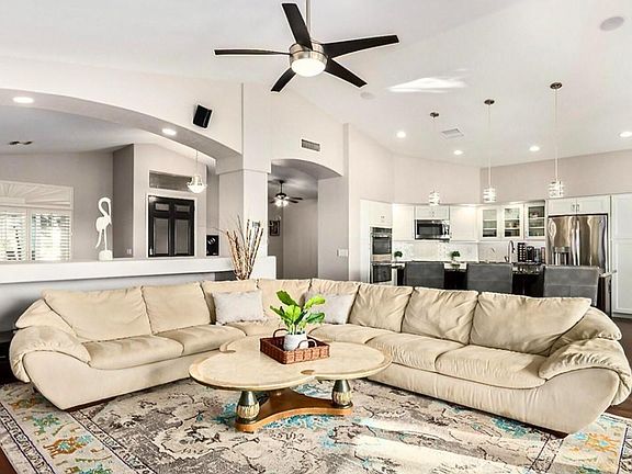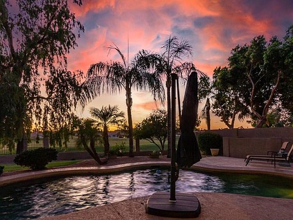 View to die for! Savor the sunsets in this Beautifully furnished, Open Concept, Golf Course Retreat in Ocotillo! Gorgeous single level, 3 bed plan w/ real wood floors, 6'' baseboards, Gourmet kitchen w/custom Waypoint cabinetry & soft close hinges, GE Profile stainless double ovens and induction cooktop, custom granite island w/stainless steel sink & Bosch dishwasher, wine/beverage fridge, glass subway tile backsplash, under cabinet lighting + island & pantry storage. Family room features a 16' wall of glass overlooking the golf course! Enjoy green vistas from the Primary Bedroom & bath w/oversized shower & separate soaking tub & walk-in master custom closet built-ins. Have fun with professional pool table. Don't miss this opportunity to live on a large, golf course lot in one of the premier communities of Chandler!