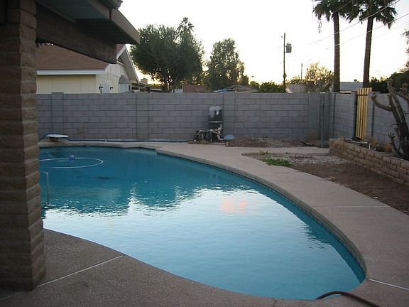 This home is like new. 3 bedroom 2 bath home with a fireplace and pool has been completely remodeled. Bedroom with brand new carpet and new tile through out the rest of the house for easy cleaning. Kitchen features brand new upgraded cabinets and breakfast bar with new counter tops range and hood. Backyard has a huge covered patio, citrus trees and planters for your summer oasis in the desert. Huge pool that is being replastered and will be like new. Dual pane windows throughout the entire home will help to keep your electric bills down. New paint inside and out. Bathrooms feature custom vanities and custom tiled showers with tile design.