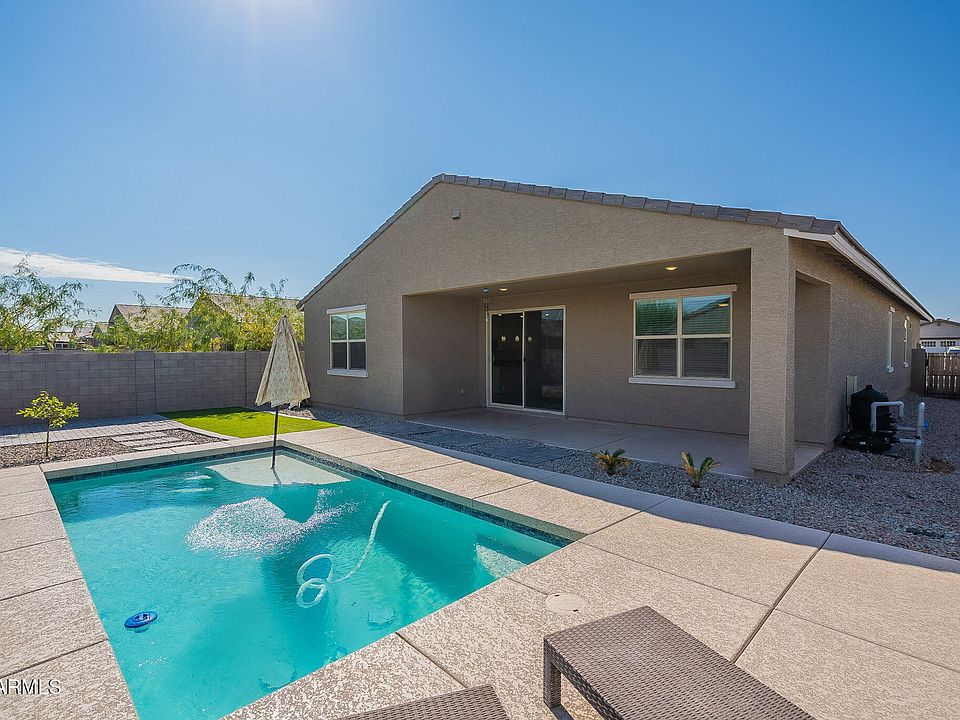 Step outside to your private backyard oasis featuring a brand-new custom pool (2023), extended pavers, turf, and rock landscaping for year-round beauty and low maintenance. With only one neighboring side and a pathway next to the home, you'll enjoy added privacy and open space rarely found in the neighborhood.