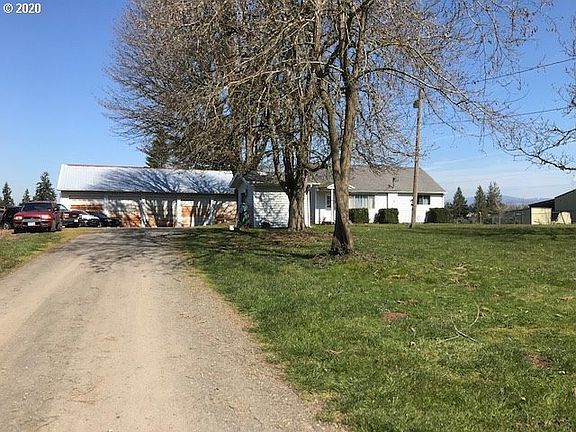 Country Charmer with 2 tax lots to make it 1.32 acres and a 5 door shop in front and 4 door in the back tall enough for covered RV/Boat/Equipment storage. This 2br 1ba with room upstairs for more, sunroom and deck just needs some TLC. Great level property with a long driveway gives space between the road and house. Big beautiful established trees