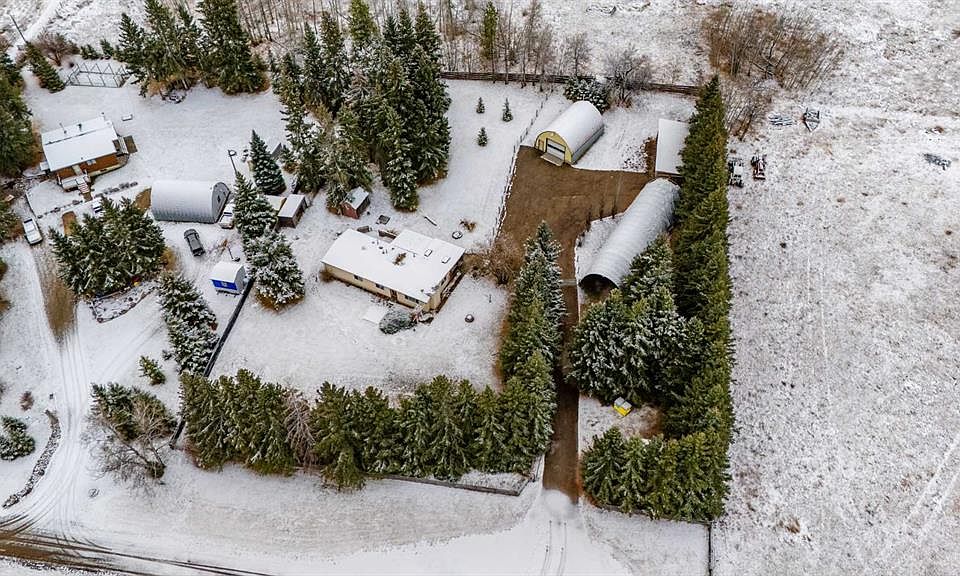 Your Own Private Slice of Country Paradise. Tucked away at the end of a quiet dead-end road in Red Raven Acres, this 1.2-acre property is surrounded by mature spruce trees, offering the peace and privacy you’ve been dreaming of. The spacious double-wide modular home is ready for your personal touch — bring your vision and make it shine! Inside, you’ll find a large primary bedroom with a 4-piece ensuite and private deck, the perfect spot to enjoy your morning coffee while soaking in the sounds of nature. Major updates have already been done for you such as brand new septic tank and mound (2024) and hot water tank (2019). Outside, you’ll love the 24’ x 32’ Quonset with a concrete floor, 220 wiring, air compressor, in-floor heat and hot water tank — ideal for projects, hobbies, or extra storage. There’s also a 16’ x 40’ open-faced pole shed (metal clad) plus a large canvas storage shelter for all your extras. This property offers the perfect blend of seclusion, space, and potential — a peaceful retreat just waiting for someone to make it their own.