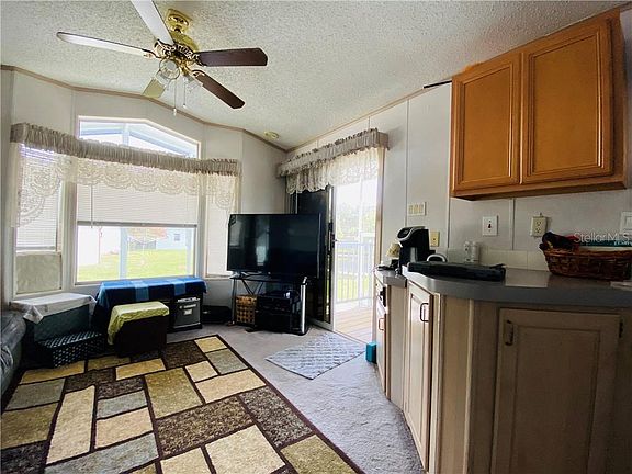 American Condominium Park is a gated community with heated pool, clubhouse, exercise room, sauna, hot tub, tennis court, horse shoe pits, shuffle board, and many more amenities. A friendly active community with dances, dinners, and monthly entertainment. Perfect for full time affordable living and cost effective for snow birds. Home has had many updates including: new refrigerator, microwave hood, roof 5 years, lanai screening 3 yrs. Newly updated electric service, bathroom sink, and faucets. RV roof-over with water and sewer hook-up. 1-1/2 story shed for extra storage. Huge lanai with pond view. Priced to sell!