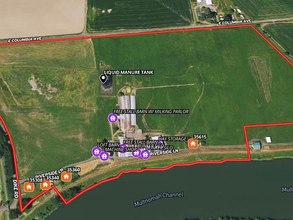 A Bumpable Offer has Been Accepted. This 102-acre riverfront farm features four houses, nearly an acre of outbuildings, excellent soils, and strong water rights. Once a thriving organic dairy, it’s ready for your vision. Continue with grazing and livestock, expand into specialty crops, or focus on rental income including the outbuildings. The homes could be elevated for stunning river views. Explore the potential for a private dock, houseboats, or even agritourism. With prime river frontage, this rare property offers endless possibilities.
