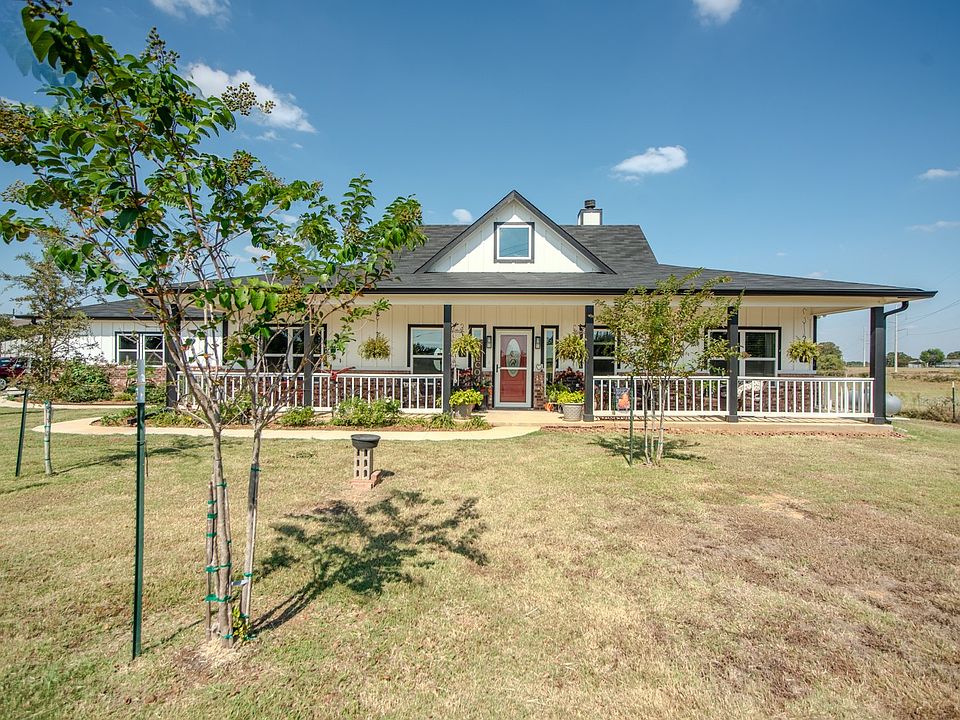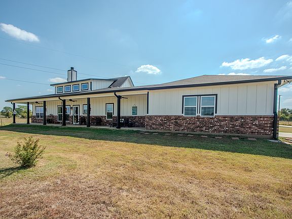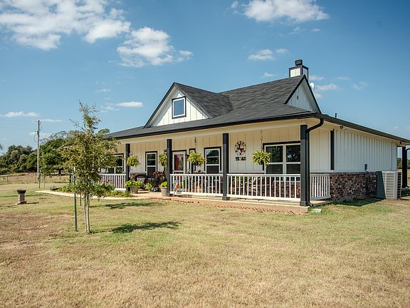 Discover the perfect blend of modern comfort and country living. Built in 2024, this beautifully crafted 3-bedroom, 2-bath home sits on 13.13 acres (ag exempt) fully fenced and cross-fenced acres with a stock tank and a spacious 30 x 40 shop complete with RV hookups, water to the barn, and electricity. Inside, the 1,739 sq. ft. home features custom wood cabinetry, granite countertops, crown molding, and a cozy wood-burning fireplace. Foam insulation provides energy efficiency, while the open-concept design and abundant storage make it both functional and inviting. Enjoy peaceful views from the covered front and back porches or take advantage of the 18-ft carport attached to the shop. The property includes sprinklers around the trees and a solar-powered entry gate for added convenience. With its white siding, brick accents, and black roof, this new home offers timeless curb appeal and a turn-key rural lifestyle—just minutes from shopping and nearby amenities. Seller offering $5000 in seller concessions