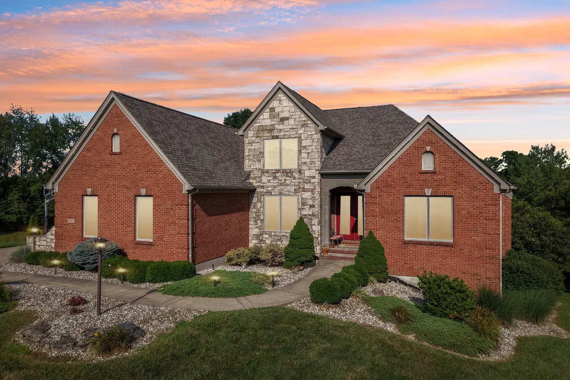 Elegant french entry doorsHot springs hot tubBrick-wrapped homeStainless steel appliancesGourmet kitchenFinished walkout lower levelCustom built-ins