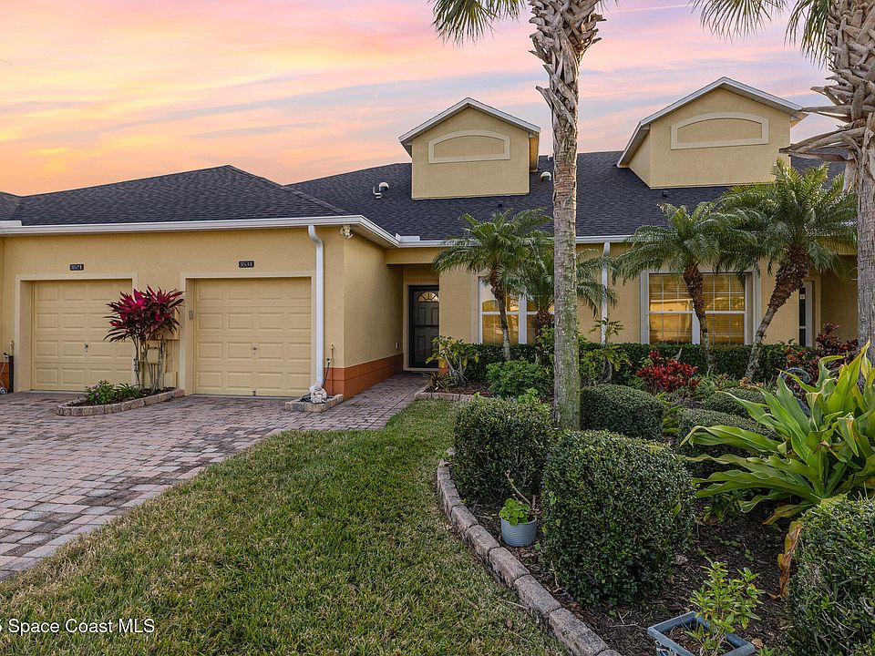 Luxury RESORT style living awaits you at this villa (townhome) located on a large lake. The extended screened covered patio with hurricane shade makes the perfect private retreat no matter what the weather! Custom landscaping and stone features in front entry make this extra special. Home has impact windows. New roof(1 year old) newer A/C and H/W/Heater. The kitchen is amazing with granite countertops and high high end appliances. The floors are wood plank not laminate! Custom shades and paint through out. This unit is so Special. It leaves nothing to be done except move right in and bring your toothbrush. If you are looking for the best of the best in the best Senior community in Viera, look no further. The clubhouse offers every amenity that one could ask for. Olympic size heating pool, hot tub as well as Restaurant, Tennis and so much more. A short walk from home to the clubhouse. This townhome is a MUST SEE!!!!