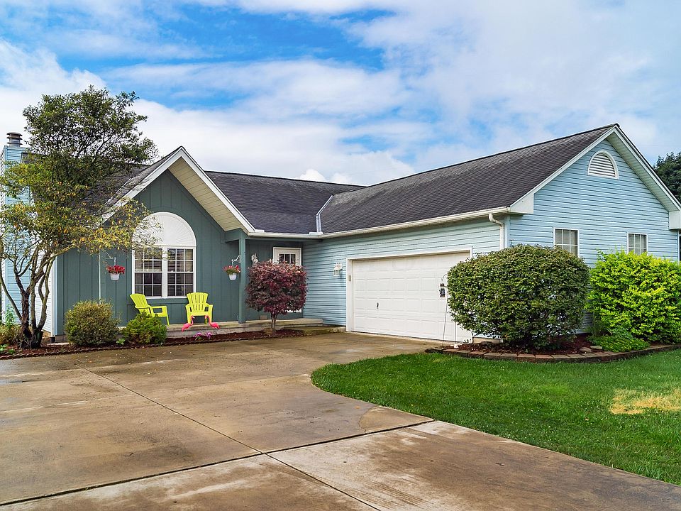 Great curb appeal! Beautiful ranch home sitting on one full acre! All neutral decor waiting for you; great new flooring in kitchen/great room areas. Woodburning fireplace with mantle and soaring ceilings in the great room. Nicely renovated bath off one Bedroom. Nice 1st floor laundry room has shelving and storage. Amazing storage in the unfinished lower level. Above ground pool just off deck in rear. Garden area and play area for the littles just past the pool. Storage shed, fencing... wide open spaces! Concrete driveway.
