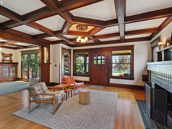 This one is truly special! An amazing opportunity to own a piece of Portland history! Perched high above the street on the 72nd greenway sits this wonderful, architecturally significant craftsman bungalow. A spectacular example of timeless design featuring handcrafted details, natural unpainted woodwork, leaded and stained glass and beamed ceilings. Show stopping formal spaces with gorgeous tiled fireplace, built-ins and French doors that open onto the large wrap around front porch for easy indoor/outdoor living. Generous rooms throughout including spacious upper level with tall ceilings, large bedrooms, huge primary closets, remodeled bathroom and fun paneled loft room. Main level bedroom and bath and versatile lower floor with outside entry. Thoughtful, period appropriate updates and the preservation of original details ensures lasting value. Enjoy the many outdoor spaces- terraced garden, private lawn, garden beds, kitchen deck and front porch. Fencing and mature plantings on all three sides creates a beautiful buffer from neighboring properties. Awesome Roseway location close to fun and convenient amenities on Sandy and Fremont- Fresh Love smoothies and sandwiches, Otto's pizza, Upright Brewing and Juniors Coffee just a stroll away plus all of the essentials nearby- grocery, hardware, banks and pharmacy, etc. [Home Energy Score = 5. HES Report at https://rpt.greenbuildingregistry.com/hes/OR10079582]
