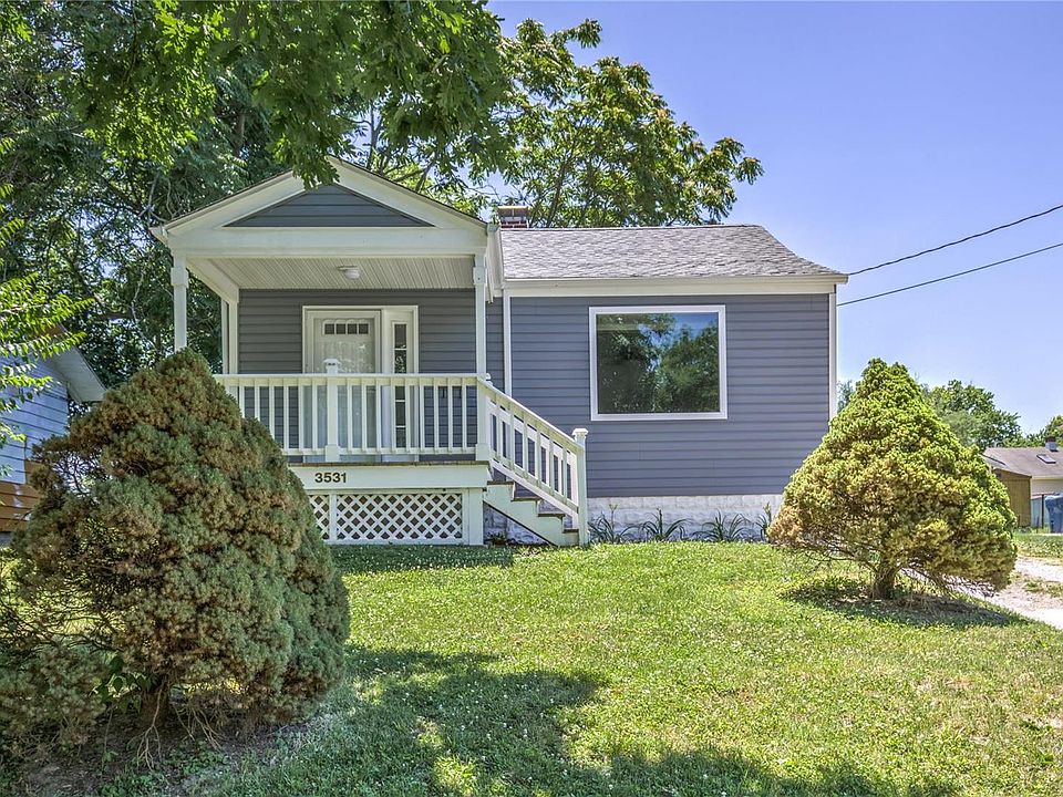 This darling home features 2 bedrooms with a full bath off of each bedroom. Many new updates from siding to windows, roof, flooring, paint, kitchen. New blinds on all windows. Detached structure can be used as a garage or a shed. Basement freshly painted-NEAT and CLEAN!!! This home sits up on a hill with a large lot. Top pristine condition....Make your appointment TODAY-This dollhouse won't last long! Seller is offering 1 year Cinch Home warranty.