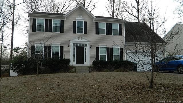 "Lovely 4 bedroom, 2.5 bathroom, Formal Dining Room, Formal Livingroom or Office, Family Room and dinette area. Kitchen has Cherrywood cabinets, Island, solid counter tops and all stainless steel appliances. Huge Master bedroom with his and hers walking closets. Master bathroom includes double sinks, private toilet, shower and a soaking tube for relaxation. House sits on a no outlet street. fenced backyard with a 16 X 16 brick patio pad for your outdoor activities, 2 Car attached garage with automatic door opener and fireplace. Nearby Stonehouse Elementary School a mile away. Convenient entry/exit I-64 just 2 miles away. Some of the Amenities includes community park with basketball, volleyball court, swing sets, play sets and walking trails around the community". Home may be available sooner than the stated date.