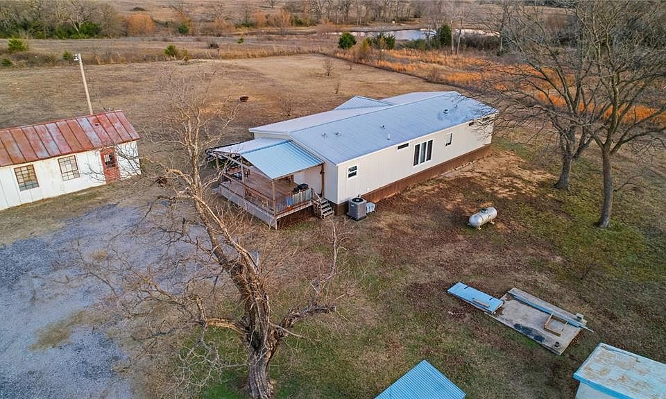 Welcome to your little slice of Heaven in the country only 2 miles from the beautiful Konowa Lake. Not only does this like new house have 3 bedrooms & 2 bathrooms, but there's also an office in the hallway with a built in desk & cabinets, perfect to work from home, do homework or place the mail. Modern farmhouse vibes are what you'll feel in the living room with the shiplap wall & LVP flooring. The open floorplan is great for entertaining & there's room for a large kitchen table, plus tons of storage in the kitchen as well as seating around the island. You'll love the metal farmhouse sink with a window above it, so you'll have a lovely view while rinsing dishes. The laundry room is huge with lots of storage, a sink & even room for a fridge or freezer. The primary suite has a bathroom with double sinks & a large soaking tub. The house is all electric with central heat & air plus additional propane heat & a hookup for a gas stove. Outside there's a shop, as well as a covered carport & storm shelter to help keep your family & vehicles safe from weather. Come see how serene this fully fenced homestead is with 4 acres, lots of trees & beautiful Oklahoma sunsets. Enjoy not having a water bill thanks to the well that also has a salt water ecosystem filtration for the whole home.