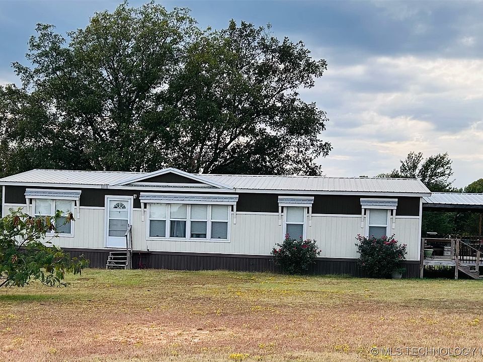 Welcome to your little slice of Heaven in the country only 2 miles from the beautiful Konowa Lake. Not only does this like new house have 3 bedrooms & 2 bathrooms, but there's also an office in the hallway with a built in desk & cabinets, perfect to work from home, do homework or place the mail. Modern farmhouse vibes are what you'll feel in the living room with the shiplap wall & LVP flooring. The open floorplan is great for entertaining & there's room for a large kitchen table, plus tons of storage in the kitchen as well as seating around the island. You'll love the metal farmhouse sink with a window above it, so you'll have a lovely view while rinsing dishes. The laundry room is huge with lots of storage, a sink & even room for a fridge or freezer. The primary suite has a bathroom with double sinks & a large soaking tub. The house is all electric with central heat & air plus additional propane heat & a hookup for a gas stove. Outside there's a shop, as well as a covered carport & storm shelter to help keep your family & vehicles safe from weather. Come see how serene this fully fenced homestead is with 4 acres, lots of trees & beautiful Oklahoma sunsets. Enjoy not having a water bill thanks to the well that also has a salt water ecosystem filtration for the whole home.