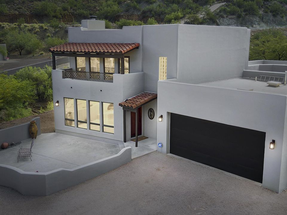 Breathtaking views, stunning sunsets, and endless trails surround this hillside gem at the base of the Bradshaw Mountains. Designed for both comfort and style, this spacious home features a large family room with a custom wood burning fireplace and floor-to-ceiling windows that frame the stunning landscape. The gourmet kitchen is complete with alder wood cabinets, stainless steel appliances, and an inviting dining area. The private upstairs master suite offers its own patio for morning coffee or evening sunsets. Four additional large bedrooms provide room for family, guests, or an office. Designer touches include built-in shelving, and 5 foot stained engraved concrete stair treads. Enjoy outdoor living with a large entertaining patio with an outdoor fireplace and a private courtyard with a covered porch. All set on nearly an acreroom for toys, space to roam, and no HOA. Welcome to King's Ranch!