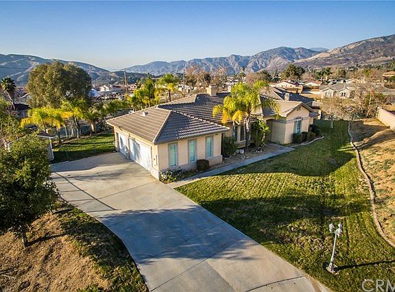 Look no further! This Beautiful Single Story home sits perfectly on just over a half acre at the end of the Cul-de-sac. It is located in the exclusive Schaefer Ranch development on the North Bench of Yucaipa. The Incredible high ceilings and open floor plan of this 2,440sqft home brings in natural light throughout. Freshly painted inside making it easy for you to move right in too. There are 2 large living areas that can be used for whatever suits your families needs whether formal or casual. It has 4 spacious bedrooms, 3 full bathrooms, and a large laundry room. In the master bathroom there is double sinks and a large oval tub to soak in after a long day. The guest room has an attached full bathroom that allows privacy for your guest. With an open layout, large island, bar space, and breakfast nook the kitchen has all the room needed to entertain your friends and the whole family. There is a 3 car garage and a storage shed that allows for plenty of space to store the toys. Whether sitting in the front yard or having a summer BBQ in the backyard you will be able to see the stunning views of the local mountains and local hiking/biking trails of Crafton Hills. Hurry, with No HOA and all this property has to offer, it won't last!