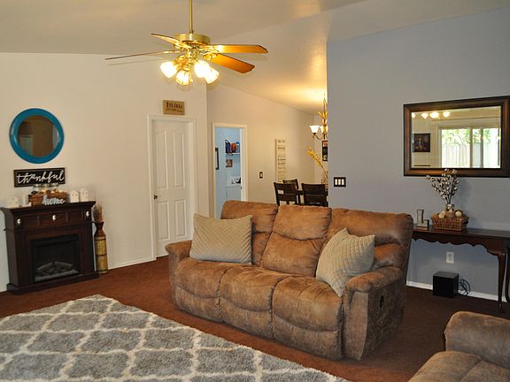 This 4 bed / 2 bath home has vaulted ceilings, open & split floor plan, laundry room, master suite w/walk in closet and french doors leading to a covered backyard patio. Back yard offers large covered patio, lawn area, sports court, pet pen and RV Parking. Newer roof and exterior paint. Barn door master bath has brand new flooring. Kitchen has double oven & microwave 1 year old, Whole House Fan