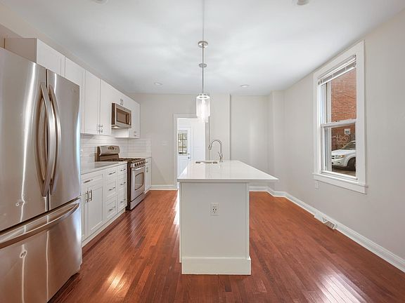Spacious historically updated 3 bedroom 1.5 bathroom 2 level rowhome in a great Hampden location available on 7-15 just off the Avenue. - Less than 1 block to the Avenue. - Short walk to the light rail and JHU. Quick drive to 83 - Parking pad in back yard for off street parking. - Light filled and updated spacious kitchen, living room, powder room and dining room off the midfloor . - Full updated bathroom on top floor with bathtub. - 3 Light filled carpeted bedrooms on the top floor. - Fenced in backyard ideal for a small dog. - Hardwood throughout mid floor. - Large unfinished basement good for storage. - Pets accepted on a case by case basis - Washer/dryer in unit - Central hvac in unit - No smoking - Background check required. Minimum credit score of 680, no evictions, and a minimum annual income of 80k except for cosigners which will have a higher required income. - 1 month deposit required. - Utilities not included. Would actually prefer the lease to end or have a renewal at the end of May.