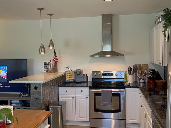 The apartment offers an updated kitchen with quartz countertops, stainless steel appliances and dishwasher. The kitchen island is perfect to sit and eat meals at, entertain around and offers extra storage for all your kitchen accessories. Kitchen is fully stocked with cookware, glassware, plates and utensils. Living room includes a new sectional couch, 65 in smart tv and entertainment center. Bedroom has a queen bedroom set with two night stands and dresser. Also has 50 inch smart tv. Carpet is brand new. Large sliding doors open up to ample closet space with shelves and organizers for clothes and shoes. AC units in living room and bedroom.