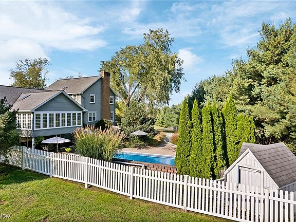 The main level includes a spacious owner’s suite with a soaking tub, walk-in shower, and large closet, along with a second bedroom, and laundry room. A stunning sunroom overlooks the in-ground pool and picturesque backyard, creating a true indoor-outdoor retreat.