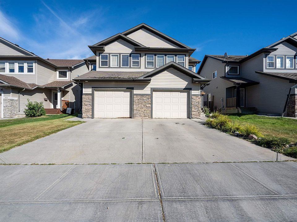 Welcome to this bright and inviting 3-bedroom + bonus room, 2.5-bath Half duplex with front attached car garage in the neighborhood of Tamarack. Designed with family living in mind, the sunlit open concept main floor features a functional kitchen, a dining area and cozy living room anchored by a fireplace plus patio doors leading to the backyard deck. Upstairs, a versatile bonus room is ideal for movie nights or a home office. The primary suite offers a private retreat with its own ensuite, while two more bedrooms share a full bath. The unfinished basement offers room to grow and personalize. This home is just steps from A Blair McPherson School, parks, playgrounds, community league and ETS bus stop. Everyday essentials are close by with grocery stores, shopping, dining, and the Meadows Transit Centre only minutes away. Comfort, convenience, and community come together here.