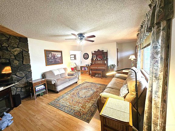 This well-maintained 1962 home offers 4 bedrooms and 2 bathrooms, with 2 bedrooms and 1 bath upstairs and 2 bedrooms and 1 bath downstairs (note: downstairs bedroom needs a window update for legal egress). Recent upgrades include new flooring, windows, exterior doors, Hardi-plank siding, and a larger side porch roof with new concrete steps. The home features a 2-car carport, room for RV parking, a Tuff-Shed, remodeled bathroom with laundry chute, induction stove, water softener, and a rear deck with two Costco gazebos and a new hot tub. The deck is an entertainers dream, with synthetic decking for easy maintenance, making it perfect for outdoor gatherings. For those in need of a workshop, this property includes an insulated 30x40 shop featuring a new 100 amp service, updated wiring, a built-in compressor, a pellet stove, and 60" ceiling fan. This property offers a perfect combination of modern comfort and practical upgrades, ideal for both living and work!