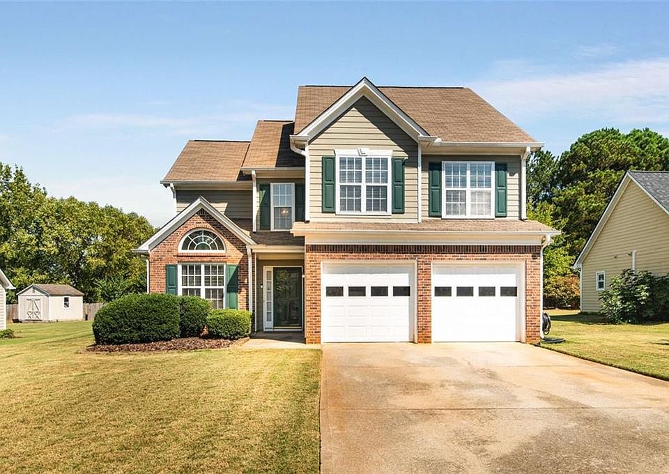 Welcome to English Oaks! This charming home boasts a level lot and driveway, complemented by brick and Hardie board siding. There is extra storage space in the garage and newer outbuilding. The split bedroom layout ensures that the master suite is distinct from the other three bedrooms. With stone countertops and solid surface flooring on the main, the interior offers a modern touch. Just a short walk to Kennesaw Elementary and the expansive 42-acre Swift-Cantrell Park. Residents have convenient access to a private community gate leading to the park, which features two playgrounds (including an inclusive one), three picnic pavilions, a spacious grassy area, half and one-mile asphalt trails, a splash pad, a dog park, a lighted skate park, a Wi-Fi hotspot, and a Life University wellness station. Additionally, the community has a pool, kiddie pool, tennis courts, and a playground. This home is move-in ready for you, just unpack and start living!