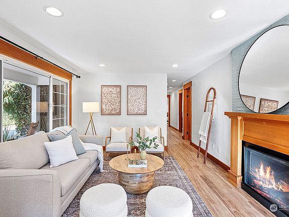 Beautifully updated one-story home in desirable University Place, offering the perfect blend of classic charm and modern comfort. This 3-bedroom home includes a versatile 4th room/office, a primary suite with a thoughtfully designed closet, and new vinyl plank flooring throughout. The kitchen shines with stainless steel Viking appliances, wine fridge, and new dishwasher. Cozy up this fall by the gas fireplace in the living room, or unwind in the private backyard with hot tub and movie screen. Additional highlights include a 3-car garage, heat pump, newer washer/dryer, and mature landscaping with fruit trees. Just minutes to Chambers Bay Golf and trails, University Place schools, shopping, and parks.