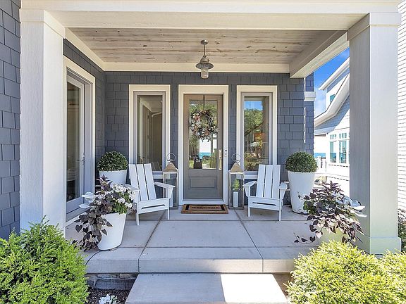Breathtaking sunset views of Lake Michigan from this truly gorgeous one of a kind beach home. No need to wait to move as this home can be purchased complete with the designer furnishings. Luxurious finishes throughout featuring an open concept main floor with a chef's kitchen, dining area, hearth room, living room, and a beautiful outdoor covered terrace. The kitchen features custom cabinets with built ins, quartz countertops, top of the line stainless steel appliances, exquisite lighting and a hidden walk-in pantry that will amaze you. The top floor boasts of four en-suite bedrooms for family or guests, a sitting area perfect for a kid's hangout or your own office, and a spacious laundry room. The master suite has dual sinks, a soaking tub, shower, and an over sized walk in closet complete with custom shelving. Not to mention, your own private covered terrace to relax and enjoy the picturesque lake views from. No detail was overlooked in this like new home, from the lower level vintage wine room to the custom bar. The lower level walk also includes a game room, guest bedroom, gym, plenty of storage, and a walk out patio to your own pristine pool customized with special lighting and top of the line equipment. Set up your private showing today. This spectacular home offers an unique opportunity to reside in your own piece of paradise