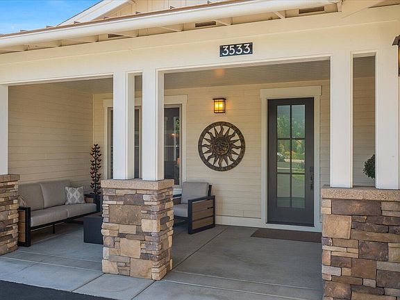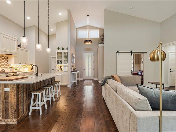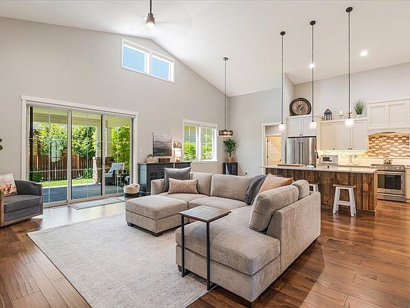This impeccably maintained single-level home in the sought-after Forked Horn Butte neighborhood offers a park-like setting blending privacy and tranquility. Spanning 2,314 sq. ft. on nearly a 1/4 acre, this home features 3 spacious bedrooms, 3 bathrooms, plus a versatile office, all complemented by an open floor plan and vaulted ceilings. The chef's kitchen is a standout with a large island, quartz countertops, beautiful custom cabinetry, wood floors, a storage shed, dedicated Boat or RV Parking with 50-amp RV service, a covered rear patio, water features, and a lush backyard oasis. You won't want to miss this gem in SW Redmond.