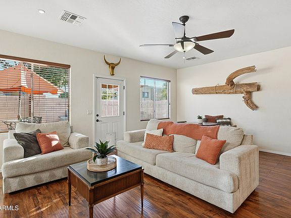 Welcome home! This super cute 3-bedroom, 2-bath single-level home is nestled in a gated community featuring a sparkling community pool and green spaces to enjoy! Fresh new exterior paint and easy-care laminate and tile flooring throughout give this home a bright, inviting feel. The kitchen offers granite counters, plenty of cabinetry, and lots of counter space—perfect for cooking or entertaining. Refrigerator, stackable washer, and dryer convey, with laundry conveniently located inside. The backyard includes paver decking and a grassy area—ideal for entertaining, relaxing, or grilling out! Major updates include a newer water heater (2 yrs) and HVAC system (5 yrs). Most Furnishings convey with the property, making this home truly move-in ready and full of charm!