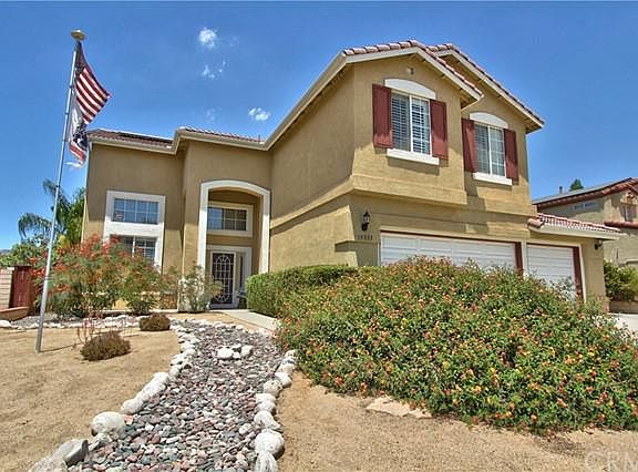 HUGE PRICE REDUCTION! Beautiful spacious home in a low tax area of Wildomar with no HOA. This 4 bedroom home features a recently updated kitchen with new cabinets, quartz counter tops, stainless steel appliances, crown molding, wood laminate flooring and walk in pantry. Upstairs you will find a huge main bedroom suite with a retreat that could easily be converted into a 5th bedroom which was an option from the builder. Enjoy amazing mountain views from the deck. The main bath has a recently upgraded shower and a huge walk in closet with built in organizers. There are three more bedrooms upstairs with jack and jill bathroom. Enormous solar system currently provides enough power to earn a yearly credit back from Edison. Other features include plantation shutters, a 3 car garage, and spacious backyard with room for a pool, drought tolerant front landscaping and a newer high efficiency dual zone HVAC system. New vinyl fencing just installed. There is even a 5 year prepaid home warranty that will be transferred to the buyer! Close to highways, golf, schools, shopping and so much more. Come see this one quick!