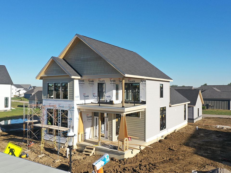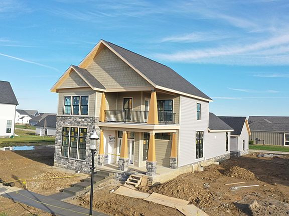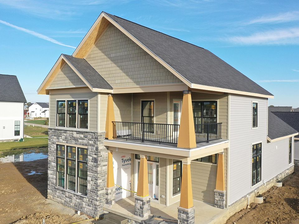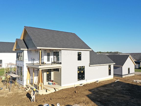 This elegant 2-story home blends modern comfort with timeless design. With 10' ceilings and oversized windows, the spaces feel bright and open. The first-floor primary suite offers ease, while a dedicated home office creates the perfect setting for work or study. The upstairs patio offers a private outdoor retreat and overlooks green space. The full basement includes rough-in plumbing and an egress window, ideal for finishing into a future bedroom and living space. Nestled within Beulah Park, residents enjoy community amenities such as pickleball courts, a 32-acre green space with walking paths, the West Pavilion for gatherings, and a scenic pond. All within walking distance of historic Grove City!