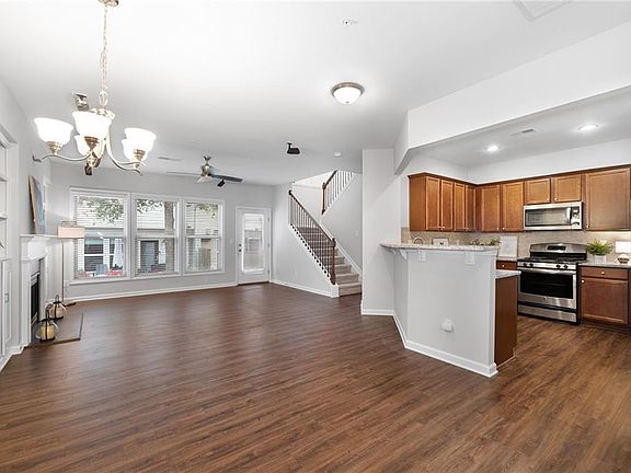 Location, Location, Location! Enjoy this quiet end unit situated within popular Vintage Square!. The home has recently had the exterior and interior painted with today's current neutral tones. Master builder Lennar Homes has done done it again building a charming community with all the amenities an owner could want to enjoy and gather at the Clubhouse and Swimming pool. This is a perfect roomy floor plan having all of the bedrooms well sized. The spacious primary suite has a vaulted ceiling, natural sunlight in the full bath, a soaking tub, double sink vanity and a large walk in closet. The primary is separated from the other ample sized bedrooms with a large loft that could be a media room or office or flex space. The kitchen has a Granite stone breakfast bar and stainless appliances with gas cooking, it is open to the dining room and family room with a view of the cozy gas fireplace which has built-in bookcases. There is a wall of windows and a door which walks out to a private patio and yard, The two car garage is kitchen level and there i additional guest parking aong the side of the property, Low HOA dues include water, sewer, trash and community amenities. Enjoy living the a desirable location in Smyrna close to shopping, dining, parks and highway access.