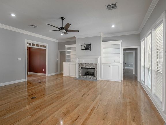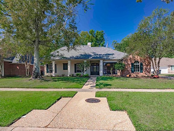 Welcome home to this lovingly maintained ONE story 5 bed 3 bath with office conveniently located in Afton Oaks Subdivision. Acadian style front porch invites you to enter and see gleaming hardwood that runs in foyer, dining, main living area & primary. Imagine the family gatherings in this dining room filled with natural light from the large picture window with family & friends around the table. Living room features gas log fireplace with wood mantel, custom built-ins, crown molding, 10ft ceilings, small wet bar area & bank of windows that allow the sunlight to flow into the space. This kitchen you can spread out & cook. Plenty of usable counter space with slab granite, custom cabinets, & walk in pantry with antique door. Appliances include: double wall oven, Bosch dishwasher & gas cooktop with down draft vent. Appreciate the multiple living spaces available. Extra room can serve as dedicated office/study with custom built-ins function as an awesome kids game room or media room. Spacious primary suite with wood flooring, trayed ceiling, & ceiling fan serves as a relaxing retreat with private en-suite bathroom includes dual vanity, framed mirror, granite counter, custom job built tile walk-in shower, water closet, plus wrap around walk-in closet. This triple split floorplan offers Mother in law wing withnew carpet & full bath with walk in tiled shower off the kitchen area. Plus 3 additional bedrooms all newly carpeted with shared full bath. Other amenities include: Roof Dec 2022, BRAND NEW carpet, mature landscaping, rear carport, additional concrete parking, security system, & outside storage room. Flood Zone X. Home has never flooded. Make your appointment today for private showing.