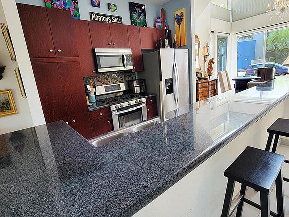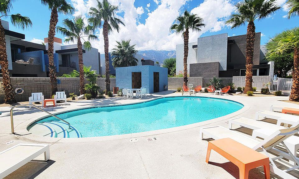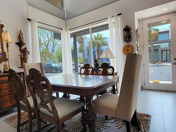 Great views and a prime location. Plus, a secluded back yard ready made for cool evenings by the fireplace. Modern Desert Dream in Palm Springs -- Style, Sun & Sophistication. Welcome to your private oasis in the heart of Palm Springs -- a modern townhome blending sleek design with sexy comfort. Think: expansive decorative gray tile underfoot, custom kitchen and baths made for entertaining, and views that practically flirt with you from every window. Slide into serenity with a lush green patio perfect for sun-kissed brunches or moonlit cocktails. Upstairs? A spacious, private balcony just waiting for breathtaking view-enjoying lounging or impromptu happy hours. Or, keep the dreamy loft-style library/office -- ideal for your morning espresso or journaling your poolside reflections. Bonus perks include a private, stacked laundry (because who wants to share?), and an attached garage for your convertible -- or just extra storage for pool floaties and fabulous hats. Don't let the current owner's personal flair cloud your vision -- this townhome has amazing bones and is ready for your own touch of glam. Once it's yours, you'll wonder how you ever lived without it. Come see it. Come feel it. Come fall in love. This isn't just a home -- it's your Palm Springs fantasy made real.