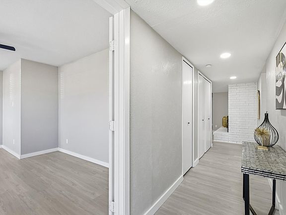 Step inside this remodeled 4-bed, 2-bath home to find an open-concept layout. Complete with fresh paint, updated flooring throughout, and recessed lighting that brightens every space. The spacious living area features a cozy brick fireplace and large sliding doors leading to the backyard, perfect for entertaining or relaxing.