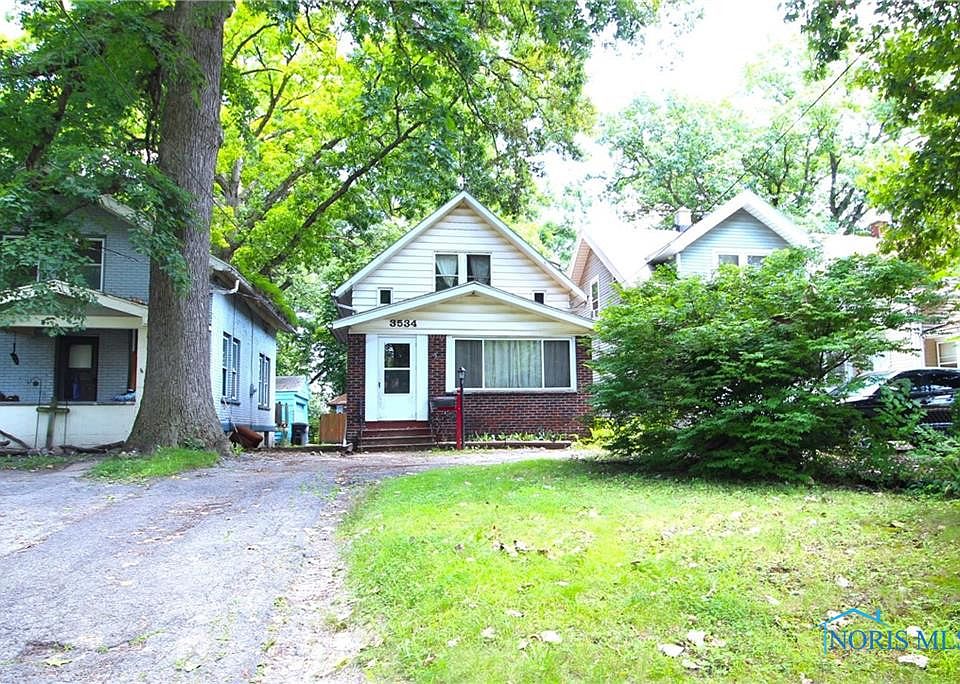 West Toledo Full Basement 1.5 Story. Deep 30x293 Lot with Above Ground Pool, Deck, Newer Extra Large Tuff shed, 1 car detached garage, and 2 smaller sheds. Fenced yard with Gate access to Liberty Park. Hardwood floors freshly refinished on 1st floor. Appliances and front loaders stay. New Breaker box, vinyl plank floor in kitchen, and vanity in bathroom. Bonus stool off kitchen, built-ins, high efficiency furnace, formal dining room, large living room opens up to den with big picture window.