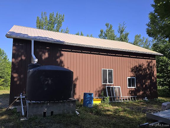 195 acres plus a whole lot more. The parcel is located 7 miles from Ontonagon. The property also includes a 10-year-old 30' by 40' metal pole building with living quarters in the back. The living quarters are used as a camp with a 19' x 14' living room, an 8' x 8' bedroom, an 8' x 6' bathroom with a toilet & metal bathtub and a 28' x 14' loft. The living quarters area also has its own entrance in the back of the building. The 28' x 24' garage area has plenty of room for all your toys. It has a large 10' x 13' overhead door. There is a water collecting system tank on the outside of the building with a holding tank inside. The building is heated with two wood pellet stoves. All contents in the building are included with the sale except for a few things in the cabinets. Also included is the trail cutter, the small trailer and the old bus which was the original camp now used for storage. The sale includes the permanent deer blinds scattered in the 195 acres. This tract has a great road system that accesses the entire acreage. The property was cut 18 years ago and is currently a fully reforested 18-year-old aspen stand. There is a small strip of unharvested timber along the south line on the opposite side of the small intermittent creek. The property is a wildlife paradise. It is loaded with deer trails and numerous ruffed grouse covies were observed when checking the property. The parcel is bordered by CFA land on the northeast side. The Flintsteel River is located approximately 500 feet from the east line. Seller may consider a land contract. Come check this one out.