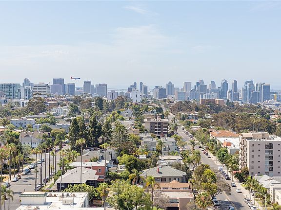 Bright and spacious unit in the Mid-Century Modern building designed by architect, William Krisel. Set in the quiet and classy Banker's Hill area with city views,this gated building is minutes away from restaurants and night life in Hillcrest. This beautiful corner unit is 1470 SF and features 2BR/2BA, large walk-in closet in the master and city views from living room. Laminate countertops in the kitchen & granite counter in bathrooms. Huge laundry room w/storage. Private balcony. A must See!!!