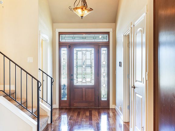 Gorgeous, custom Bruce Wiechert home in prestigious Ryan Meadows—where beauty & comfort meet craftsmanship. This exceptional property combines elegance, functionality, & comfort on .24 acre lot. Designed both for living & entertaining the modern open-style living room features soaring 18 ft ceilings, Brazilian Cherrywood floors, large windows, and a gas fireplace. The gourmet kitchen invites culinary creativity and boasts granite countertops with breakfast bar, built-in gas range, double ovens, built-in microwave, stainless appliances, tile floor and vaulted ceilings to match the living room. The dining room looks out over the covered back patio to the landscaped backyard and water feature. The primary bedroom & ensuite are on the main floor with garden tub, walk-in shower, and large walk-in closet. The main floor hosts the fourth bedroom/office/den, utility room and pantry—each with built-in cabinets and ample storage. Up the stairs are two more bedrooms with double closets. The second floor bathroom has a tub. A large, usable bonus room on the same floor is perfect for movie watching, guests, a craft/play room, or additional storage. Outside is a fully landscaped yard with built in sprinklers, an Asian pear tree, gas hookup, and a beautiful & unique large water feature. The backyard is fully fenced and very private. Full RV parking along the side of the house next to raised garden beds and a shed with its own electric panel. The two car garage is big enough for parking or storing any kind of motor toy or bikes. Thoughtful details, abundant storage, a blend of elegance and functionality, and cul-de-sac living make this property truly one-of-a-kind. Come see why this is more than just a house—it’s a lifestyle. Listed as 2300 sq ft per Seller. RLID states 2100 sq ft. Buyer do due diligence.
