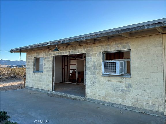 Empty canvas Single Family Residence on large lot. Cinderblock and wood-frame construction, 880 sq. ft. of living space on 5 acres in Desert Heights. Unincorporated 29 Palms with water meter and electricity that needs to get hooked up. Close enough for utility and far enough for privacy. Simple layout that maximizes every inch of its footprint. Open vistas all around with mountain views in the distance. Bare bones and ripe for a rebuild. Comes with shipping container for enclosed storage during reconstruction.