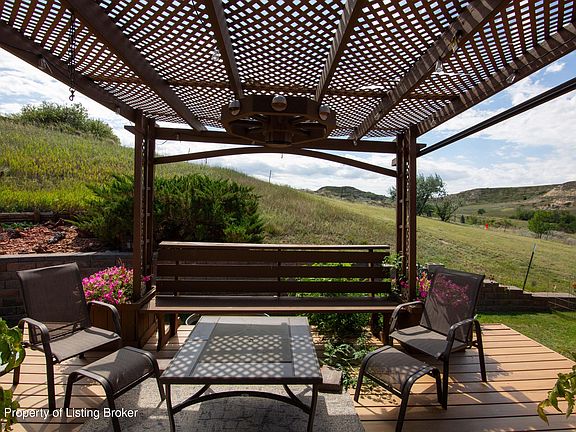 THE BADLANDS, THE BLUE SKIES.....9 Acres with a BEAUTIFUL home, less than 1 mile from the heart of MEDORA and 1.5 miles from the entrance to THEODORE ROOSEVELT NATIONAL PARK! Breathtaking views of the Outdoor Amphitheatre, the upcoming Presidential Library, the Badlands and the Little Missouri River! This property has been meticulously maintained with welcoming curb appeal to all of the visitors that are on their way to the Bully Pulpit Golf Course. In the home, everything you need is on the main floor; including a Primary bedroom with an en suite bathroom featuring a shower AND jacuzzi tub. The Bonus room upstairs could be used as an office or a third bedroom.