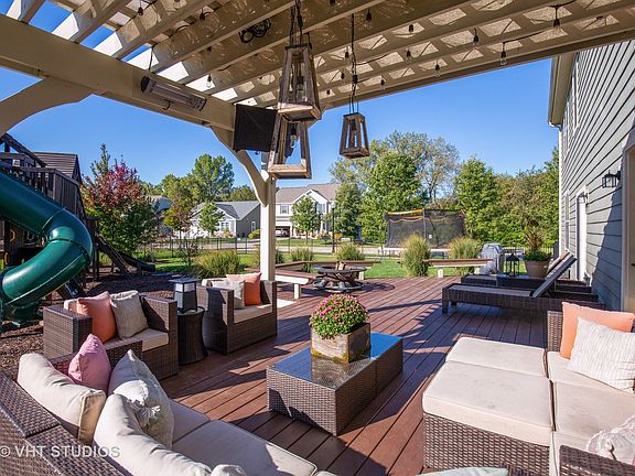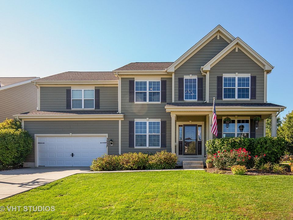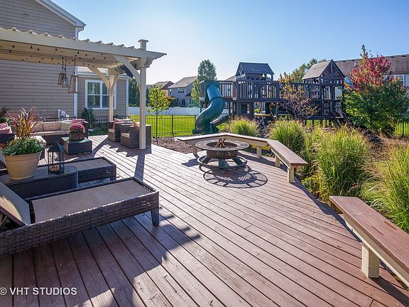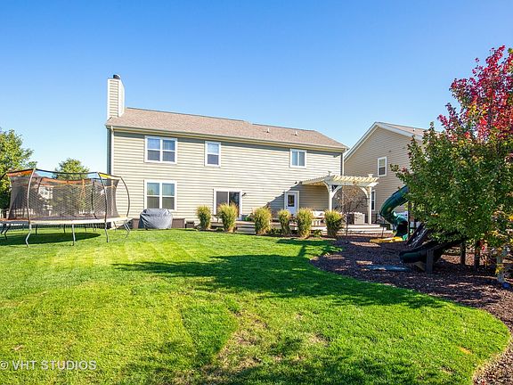 Located in the very desirable subdivision of Highland Woods, this extremely well maintained home is ready for its new family! The kitchen has gorgeous maple cabinets which are staggered in heights and finished with crown molding. Granite counters, stainless steel appliances, including a double oven with convection features and a newer Bosch dishwasher, a walk in pantry and eating bar, in addition to an eating area, make the kitchen a great place to prepare and enjoy meals. The family room has a two story ceiling that brings in loads of sunlight and includes a wood burning fireplace to make it a cozy living area. The mud room has been finished with a locker area to store hats, backpacks and coats and the flooring in there and the adjacent powder room is stunning travertine tile. The beautiful hardwood floors throughout much of the first story have just been sanded and refinished. Upstairs is a loft, which could easily be converted to a fifth bedroom. The primary bedroom suite is huge and has a large walk in closet and a bath with separate tub and shower. There are three other bedrooms that share a nice additional bath. The laundry room is conveniently located on the second story as well. The garage is a three car tandem garage. The basement is unfinished, roughed in for an additional bath and ready for your finishing touches. The desirable oversized corner lot is fenced and the backyard has a beautiful deck with lighted pergola, along with a playset for the children. This home has fresh paint, all light fixtures, door hardware and plumbing hardware have been updated. This is a very family friendly neighborhood and is located in the Burlington School District. Don't miss this one!!