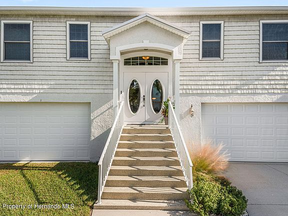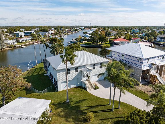 LOCATION, LOCATION, LOCATION! Welcome home to this Spectacular Custom-built, 2-story, like-new Waterfront Pool home, offering direct access to the Gulf of Mexico in the coveted Hernando Beach, FL. Thoughtfully perched on an Oversized, Mature Landscaped, Well-lit lot, Completely Fenced on deep water Tarpon Canal. Your Own 10,000 pd Boat Lift and New Fixed Deck for seamless access on and off your boat. Say goodbye to storage fees$$ * All within minutes of the open water * BONUS: Rinse off after a day of fishing/boating to a private Outdoor custom Cedar shower ** Arrive home to towering Palms trees and enter through the freshly painted Double Door entrance. With a total of 2282 square feet under roof and 1658 square feet of indoor * open concept *, living space including 3 bedrooms * 2 bathrooms * split floor plan design PLUS * Pool Half bath. Step into the impressive open floor plan and your eyes will draw immediately to the Outdoor views above the Rooftops. Light and Bright with beautiful Neutral paint tones and bamboo wood floors, waking to sunrise views from the Primary suite, Great room, Balcony, Dining and Kitchen perfect for entertaining with family and friends or to enjoy your morning coffee. A well-appointed open concept Kitchen * Gorgeous Granite countertops * Beautiful Maple Wood cabinets * Gorgeous tile floors * Upgraded Newer Stainless-Steel Appliances. Open the triple set of sliders to the expansive, covered and screened-in Balcony and take in those breathtaking views overlooking the Beautiful Pool with a spiral staircase for easy access. The fenced in yard has a feel of a private park on the water! The Primary Suite offers balcony access, a peaceful en-suite bathroom with exquisite tiles in the Walk-in Shower * Double sink vanity * Granite counters * Walk-in Closet * plenty of Natural Light. Bedrooms 2 & 3 are anchored by Bath 2 that offers Granite Countertops * Deep tub/shower combo accommodating little ones or guests that like to soak * Efficient laundry room to complete the second floor * Custom, top of the line blinds have been installed to complete the look. The garage is huge can accommodate 2 vehicles and any of your custom workshop needs. Add'l room in garage w/ thought for future elevator, if ever needed. The lot is surrounded by water on two sides of concrete seawall. This home has it all and has been meticulously taken care of by the homeowner with a specific vision of simple coastal living. Roof 2010 * made of metal, a low-maintenance material with long life span. 2022 HVAC * 2023 Pool pump replacement *. Take a ride in your Golf Cart and explore the Quaint community of Hernando Beach still just a short drive to TIA and Orlando. Also referred to as a part of Florida's Adventure Coast, local Restaurants, Beach Bars with live music daily, Marinas, Walking trails, local shopping, fresh seafood and a Lively Local Community. Enjoy water adventures, land adventures, attractions, parks, scalloping and much more. * The Mermaid Tale Trail which is comprised of 27 mermaid statues hidden throughout Hernando County. Surrounded by the Weeki Wachee Preserve * Weeki Wachee Springs State Park * Pine Island *Weeki Wachee River. No HOA fees. No CDD fees * No restrictions for short-term rentals. If not now, then when? You have to come see this beauty.