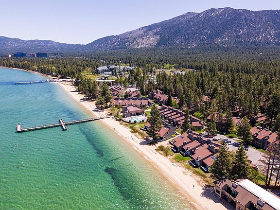 Discover your slice of paradise at Lakeland Village Condos, an exclusive lakefront community nestled on 19 pristine wooded acres along Lake Tahoe's most coveted sandy beach. With 1,000 feet of private shoreline, this premier property offers the perfect blend of luxury and natural beauty.This thoughtfully furnished studio condo offers stunning views of the year-round heated pool and spa area. Modern conveniences abound with heated hallways, elevator access, and underground parking. Whether as a cherished family retreat or a lucrative investment opportunity through short-term vacation rentals, this property presents an exceptional opportunity to own a piece of Lake Tahoe's legendary lifestyle.Indulge in resort-style amenities including a private HOA pier, firepits and fitness center. Year-round enjoyment is guaranteed with a heated pool, while two seasonal pools and two inviting hot tubs provide additional options for relaxation and recreation. Owner financing available with 50%+ down.