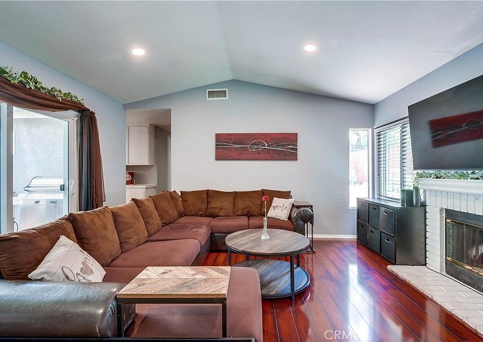 Highly desirable upgraded and improved single level home superbly located backing up to a peaceful greenbelt in the sought-after Sierra Del Oro, Deer Valley community, nestled close to the picturesque rolling foothills of the Santa Ana range in west Corona. Step inside and soak in the light filled interior with vaulted ceilings, gorgeous wood laminate flooring, and recessed lighting setting the stage for an ideal living space. The spacious open concept living area boasts a cozy fireplace and is open to the dining area with direct access to a sunny center atrium creating an ideal indoor-outdoor living space for relaxing and entertaining with friends and family. The sparkling kitchen is blessed with an abundance of storage and countertop space, a prized breakfast bar, recessed lighting, and has been beautifully updated with sleek new Quartz countertops, a new sink, and new faucet. The sun filled breakfast nook has direct access to the atrium creating a wonderful space for morning coffee and Al-Fresco dining. The primary bedroom suite is a peaceful retreat with vaulted ceilings, mirrored closet doors, sliding doors providing greenbelt views and direct access to the backyard, and a beautifully remodeled primary bath with a gorgeous new Quartz topped vanity, new vanity mirror, new fixtures, and a stunning walk-in shower with custom tile surround, waterfall shower head, and a frameless glass shower enclosure. Two guest bedrooms with mirrored closet doors and an updated guest bath with re-glazed tub and a beautiful new Quartz topped vanity complete this well-designed floor plan. This beauty includes an attached direct access two car garage with full size laundry hookups. The wrap around backyard is a private oasis overlooking a tranquil greenbelt and has been improved with raised planters perfect for a home garden and a paved patio with gazebo providing a welcoming covered gathering space for BBQing and relaxing with loved ones. Ideally located just steps away from the community pool, and within walking distance of dining and shopping at Sierra Del Oro Town Center, Prado View Elementary School, local parks, and numerous hiking and biking trails. Convenient location just off the Green River exit with easy access to the 91, 241, 71, and 15 frwys, and just minutes from Orange County. Low HOA and No Mello Roos!