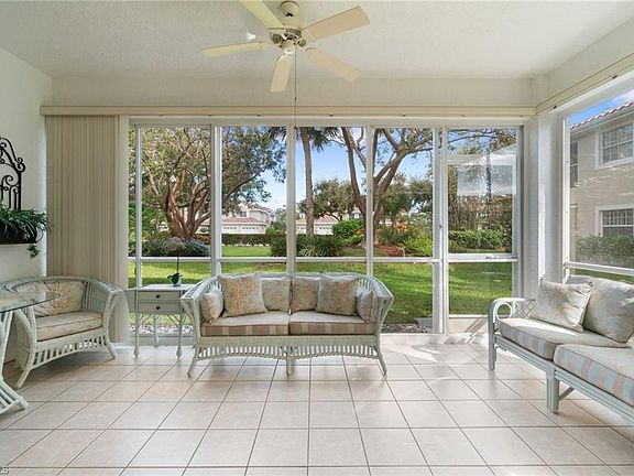 Discover coastal charm in this spacious 2-bedroom + den, 2-bathroom condo nestled within the prestigious Windstar on Naples Bay community. This 1,800+ square foot, first-floor retreat offers a comfortable interior with an open-concept layout. The lanai, enhanced with glass panels, extends your living space and provides stunning views of the lush tropical landscaping. A versatile den, complete with doors and a pull-out couch, offers flexibility for guests or a private office. As a resident of Spinnaker Pointe, you’ll have access to exclusive amenities, including private tennis courts, a sparkling pool and spa, and a private clubhouse. With a transferable SOCIAL MEMBERSHIP, you can immediately enjoy the newly renovated Windstar Club, offering fine dining, state-of-the-art fitness facilities, tennis, pickleball, bocce, and a vibrant social calendar. Windstar offers residents a boat shuttle service to their exclusive Keewaydin Island private beach. Here, you can bask in the beauty of miles of pristine white sand and the stunning blue waters. This prime location, just minutes from downtown Naples and pristine beaches, makes it the perfect place to experience the ultimate Florida lifestyle.