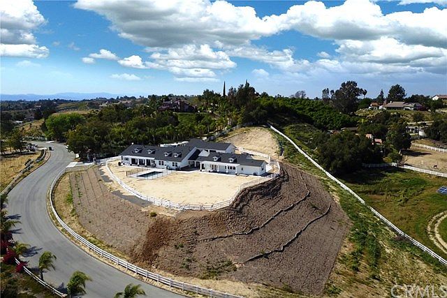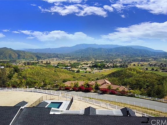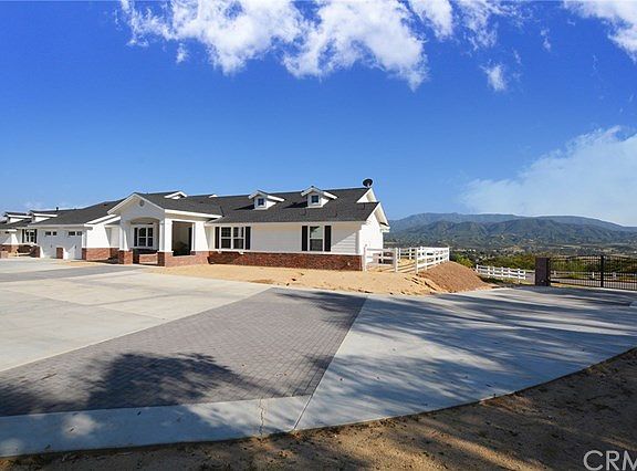 This new build property with spectacular Temecula Wine Country views and year- round breeze is located right by the Groves Estates. The property consists of two single story homes connected by a covered courtyard. The main residence is 3,265 sq ft and offers 3 bedrooms, 2 1/2 bathrooms, 2- car garage plus an office, dining room and exercise/craft/storage room. An open family room leads to an outdoor patio with cozy brick fireplace & TV. Gourmet kitchen with granite countertops, massive island, stunning walk in pantry, self closing cabinets and more. The secondary residence offers 1,423 sq ft of living space, 2 bedrooms with own bathroom each, a kitchen, family room with fireplace, another 1/2 bathroom and 2- car garage. Some of the many upgrades include hardwood floors, high quality carpet in each bedroom, crown moldings, LED lights, tankless water heaters, a built-in surround system, security cameras or RV hookups. Outdoor large entertaining area with covered patio and pool is perfect for those summer days. Majority of the irrigation is in place, including vineyard, with the stakes already embedded in the ground. The rest of the land is ready for you to add your own landscaping touches.There is a bonus 3rd, 2,112 sq ft building which can be used as an office space, workshop, entertainment/party room. This building includes a separate kitchenette, 1/2 bathroom, storage rooms and is pre-plumbed for solar which would be sufficient to supply all 3 properties with energy!
